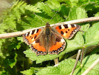 0830 - 1010 sunny to 9c : Gadwall 4, GC Grebe 4, Lapwing, Oystercatcher 2, Swallow 2, Willow Warbler 5, Chiffchaff 4, Rook 3, Long-tailed Tit 2, Linnet 4, Chaffinch m, Reed Bunting pair, Green Woodpecker, Skylark 2, Pied Wagtail, Song Thrush in song. Also Small Tortoiseshell 4, Peacock & a few hoverflies..... Linley Wood 1430 - 1530, sunny 14c : Ring-necked Parakeet noisily flew in, landed briefly in tree then flew towards Park Lime Pits, Jay 2, Nuthatch, Buzzard 3, Chiffchaff. Also Small White 2, Brimstone 3m, Orange Tip 2m, Peacock 5 & Small Tortoiseshell 3. Tortoiseshells & Peacock this morning. (GWR)
