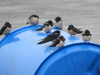 0930-1000 overcast 6c : Whitethroat, Swallow 10, House Martin 3, Sand Martin 6, Little Ringed Plover 4, Oystercatcher, Pied Wagtail, LBb Gull 9, GC Grebe 6, Mute Swan pair, Heron, Linnet 2, Goldfinch 3, Sparrowhawk. Lesser Whitethroat, Whitethroat & Sedge Warbler, all playing hard-to-get on 17th April.